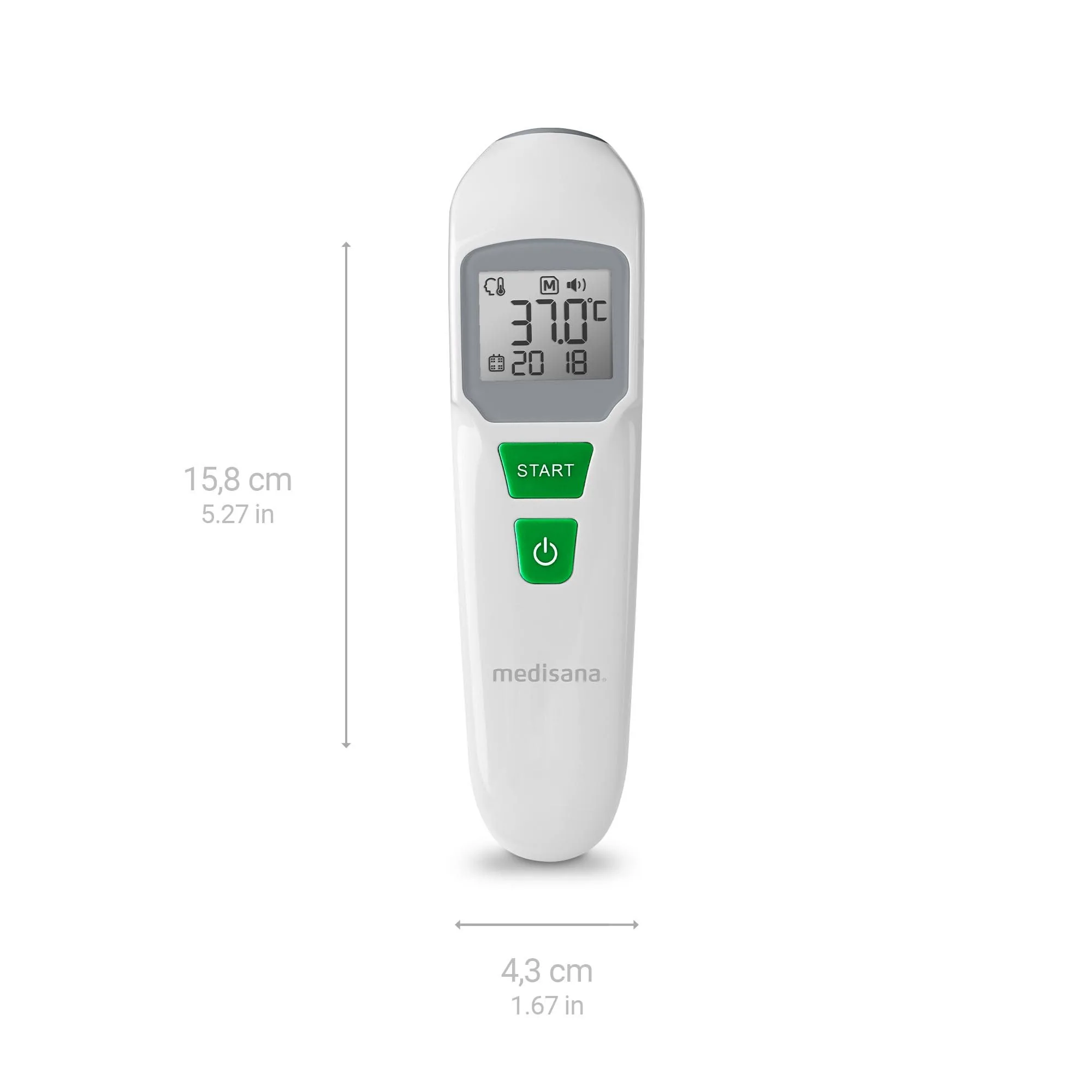 The Medisana TM760 Thermometer is a non-contact infrared thermometer that provides fast and accurate temperature readings. It is designed for hygienic, non-contact measurement of body temperature from the forehead, making it a convenient choice for all ages, especially for measuring the temperature of sleeping children without disturbing them. It can
