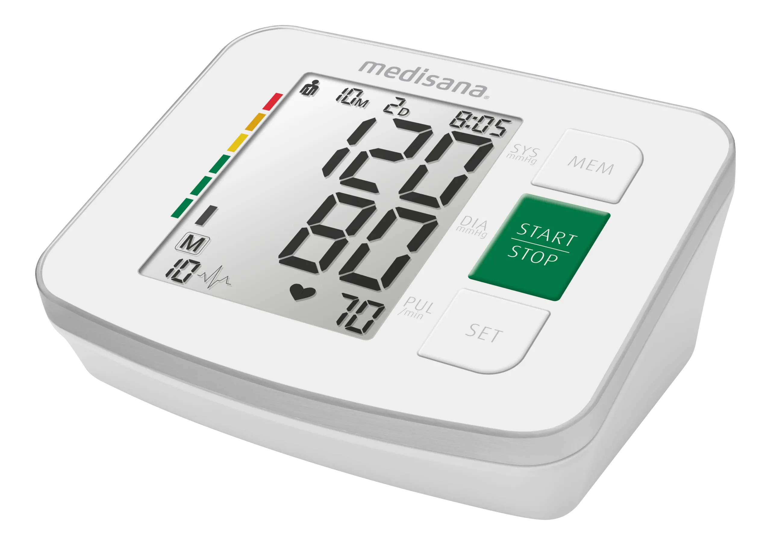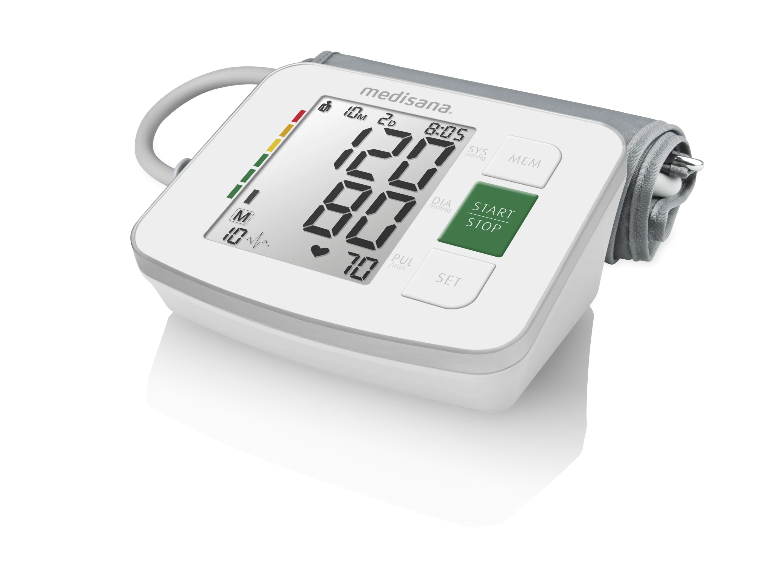 Large digital display: Clearly displays readings with WHO classification indicators for easy pressure level identification.