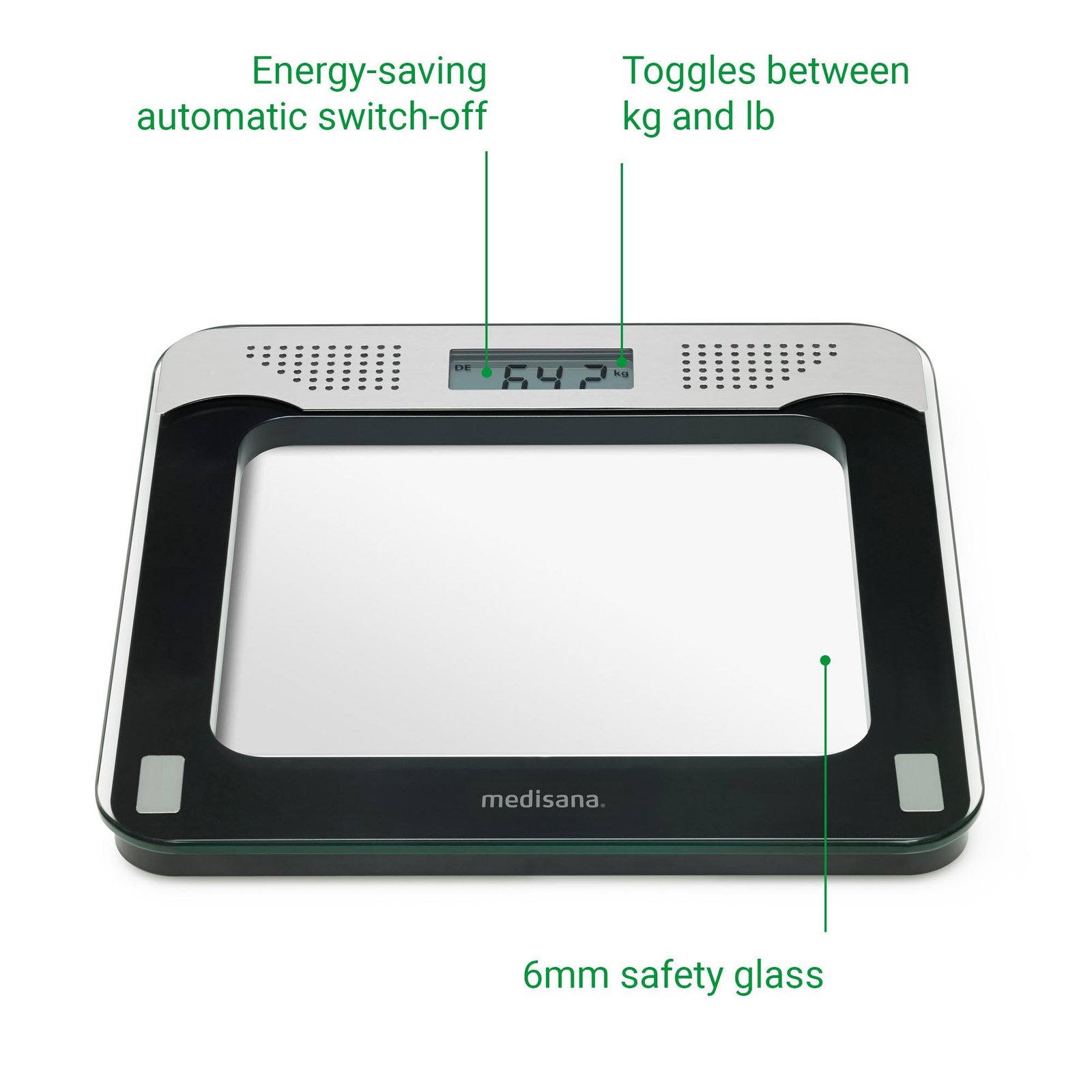 إذا كنت تبحث عن ميزان شخصي ديجيتال ناطق يجعل متابعة الوزن أسهل وأكثر وضوحًا، فإن ميديسانا PS 425 يمنحك تجربة عملية ومريحة جدًا داخل المنزل. هذا الميزان الديجيتال الناطق لا يكتفي بعرض الوزن على الشاشة، بل يمنحك أيضًا قراءة صوتية واضحة، وهو ما يجعله اختيارًا مناسبًا لمن يريد طريقة أسهل وأسرع لمعرفة الوزن اليومي بثقة وراحة. كما أن هذه الميزة تضيف قيمة كبيرة داخل البيت، خاصة لمن يفضلون ميزان حمام ديجيتال ناطق يجمع بين الوضوح وسهولة الاستخدام.